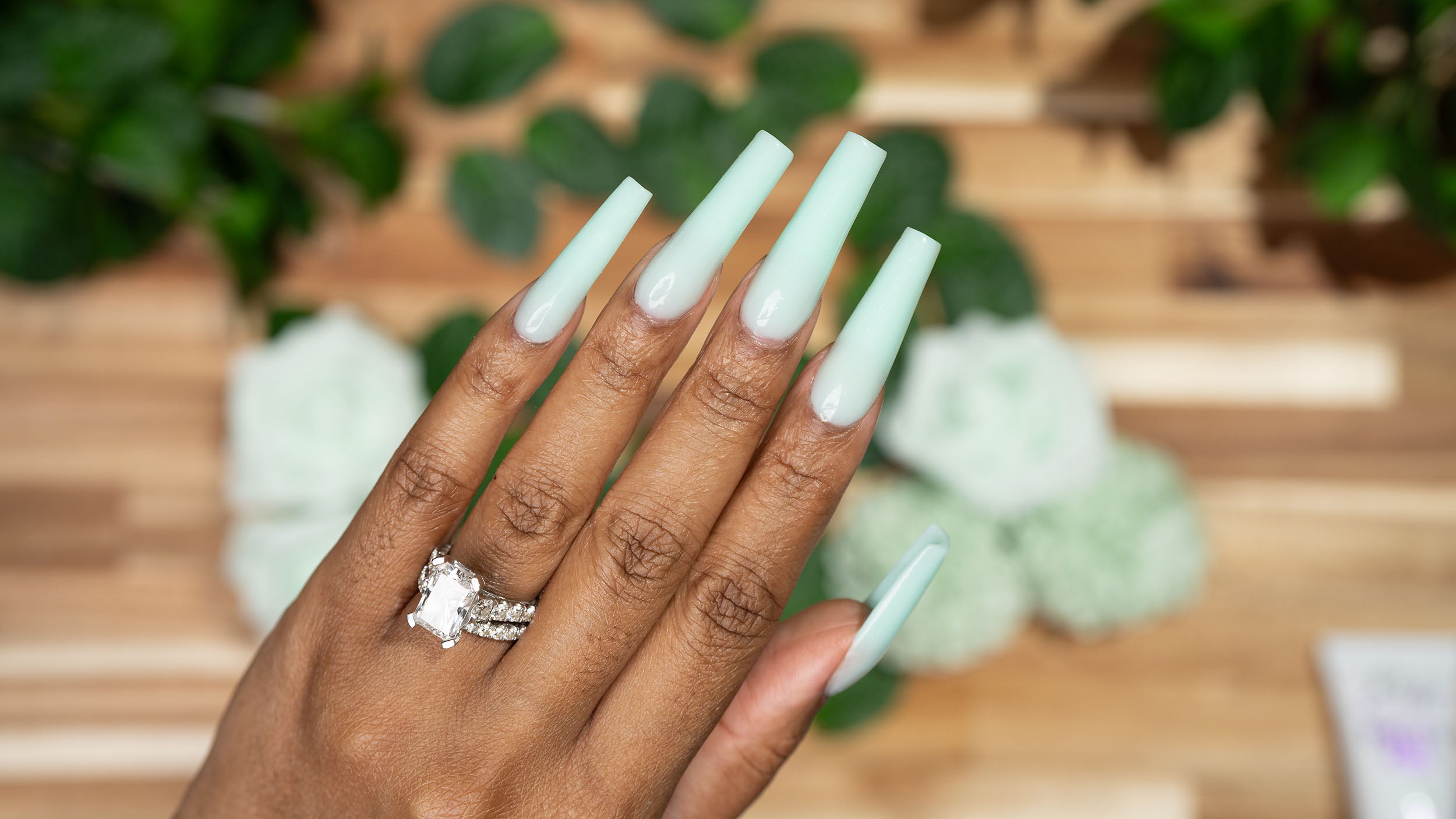 This adorable polygel combines a light pink base with enchanting iridescent shimmer, creating a dreamy, fairy tale-inspired look.